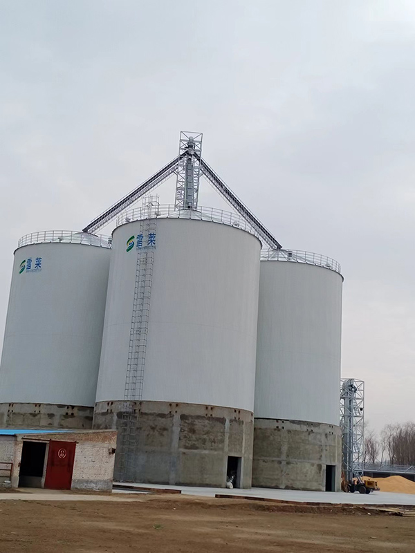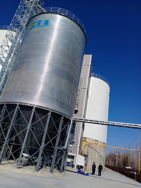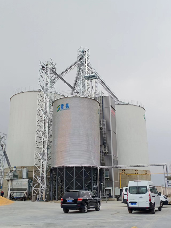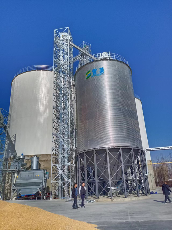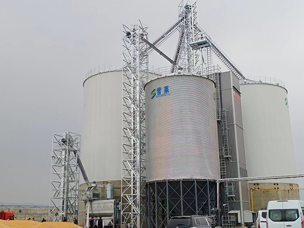 山西大同匯豐農(nóng)業(yè)進(jìn)口烘干塔搭配雪萊3臺(tái)2000T水泥錐底保溫鋼板倉(cāng)+1-500T全鋼錐底暫存?zhèn)}投產(chǎn)運(yùn)行中